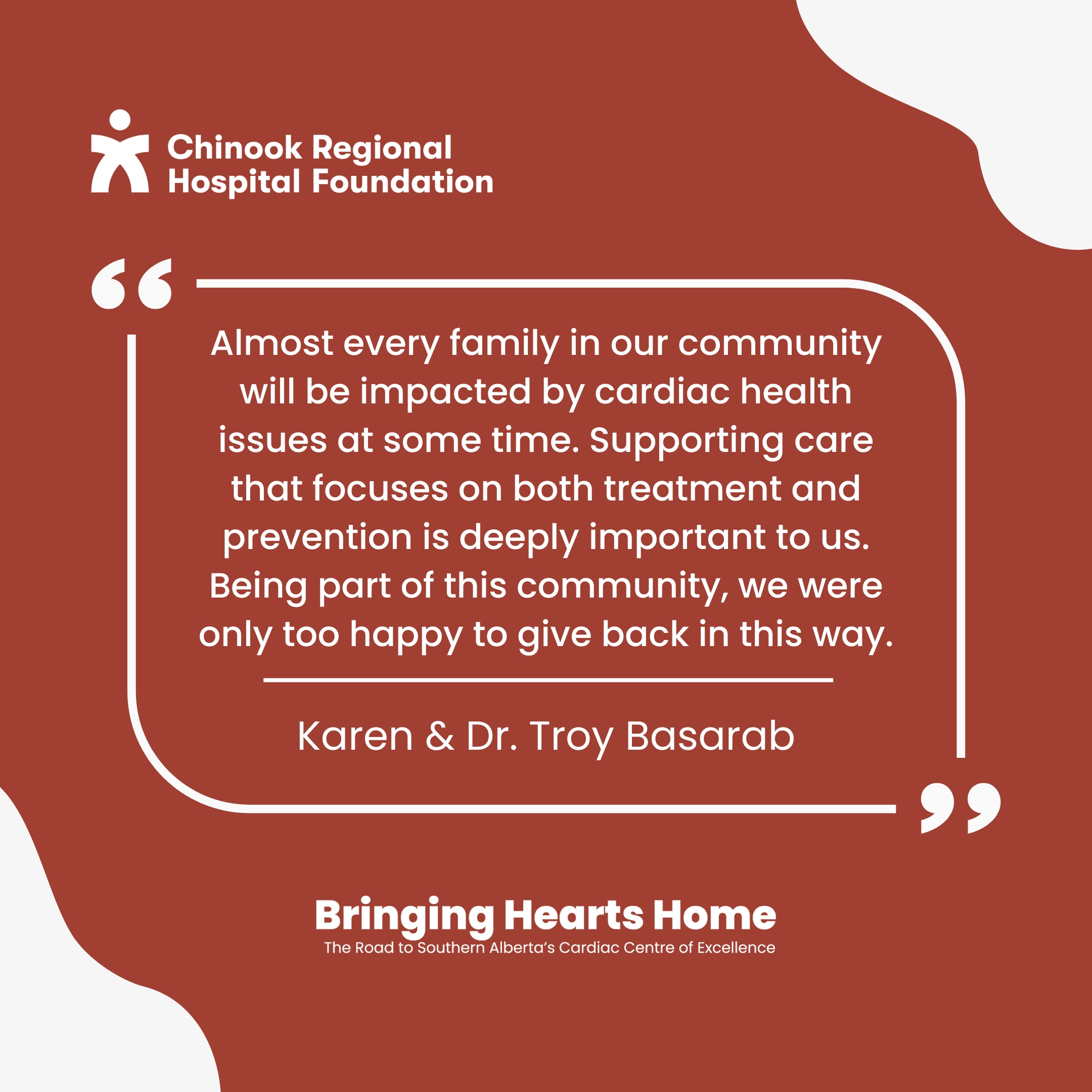 The Chinook Regional Hospital Foundation is proud to announce a generous $100,000 donation from Karen and Dr. Troy Basarab.
