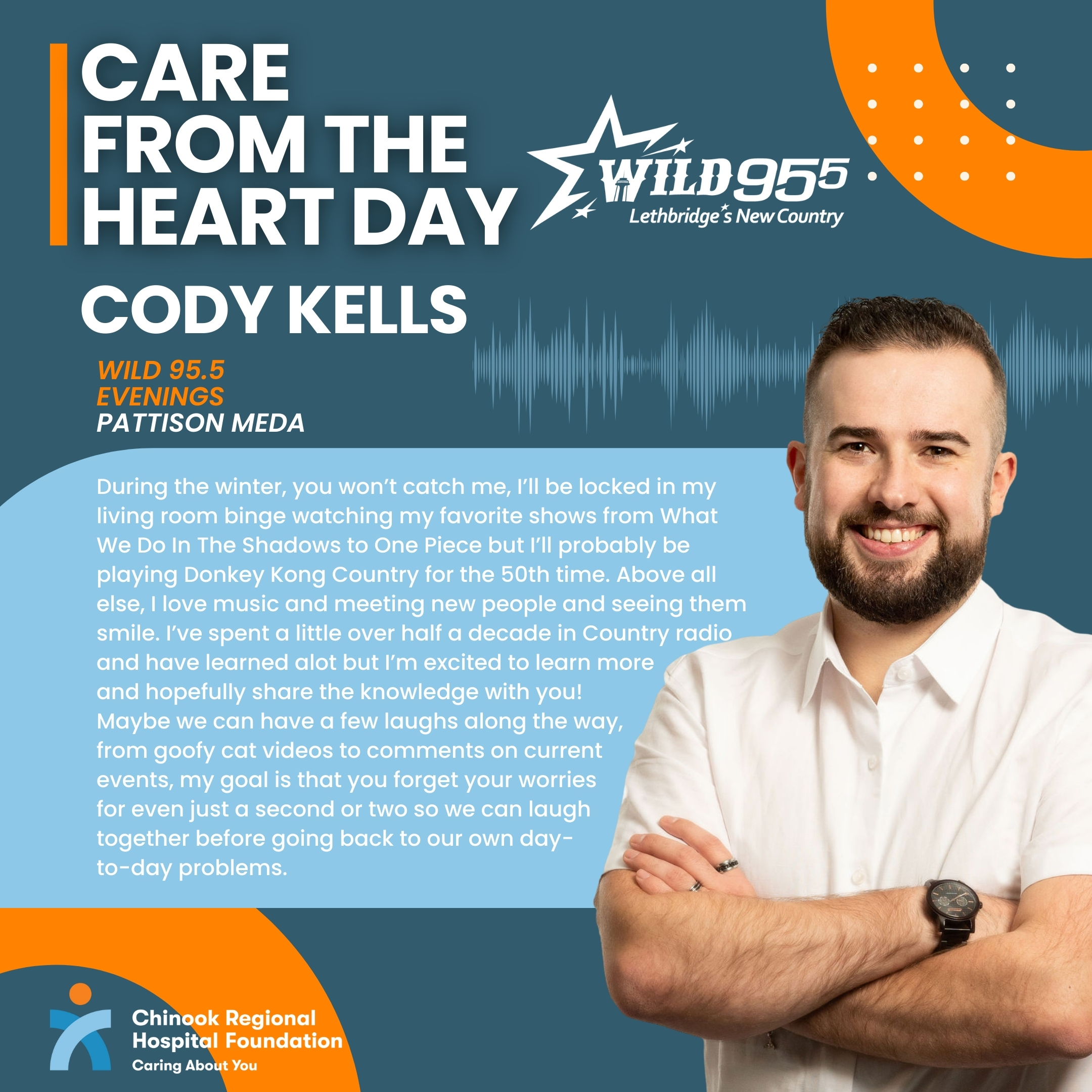 You should always support your local hospitals not just for care From the Heart Day, but every day. Nobody gets to choose when they have to use the Emergency Room, so continuing support of Hospitals and Health Care is great for the community and yourself! Why do you love radio? I love telling stories and interacting with the people of Lethbridge and southern Alberta. What would be your ideal Valentine’s Day? Sleep What is your ideal Valentine’s Day movie? Song? 2008's Rambo (it is an inside joke) |